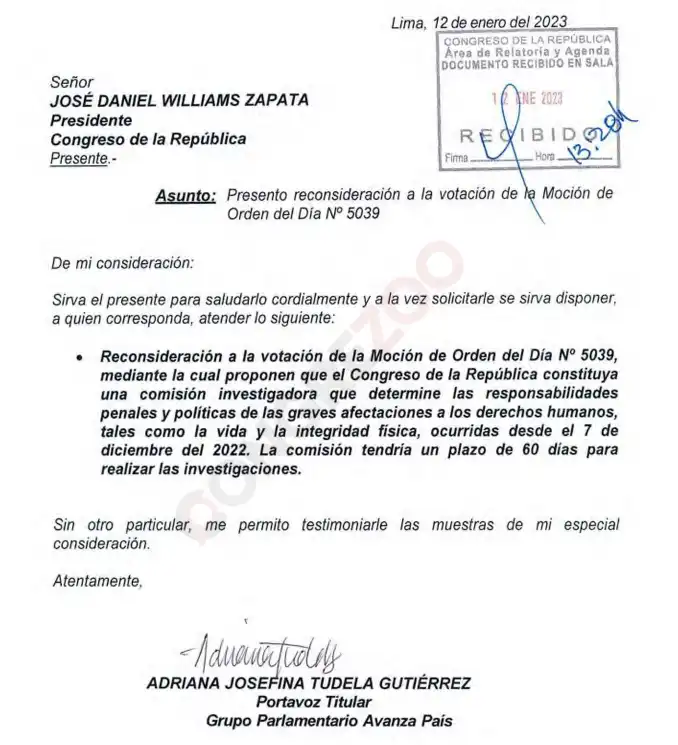 La sola presentación de este documento era ya un obstáculo. José Williams, entonces presidente del Congreso, sometió a votación este pedido de Tudela recién el 3 de marzo de 2023.